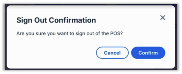 For actions with low risk, such as signing out of the POS, the modal will display as pictured here: