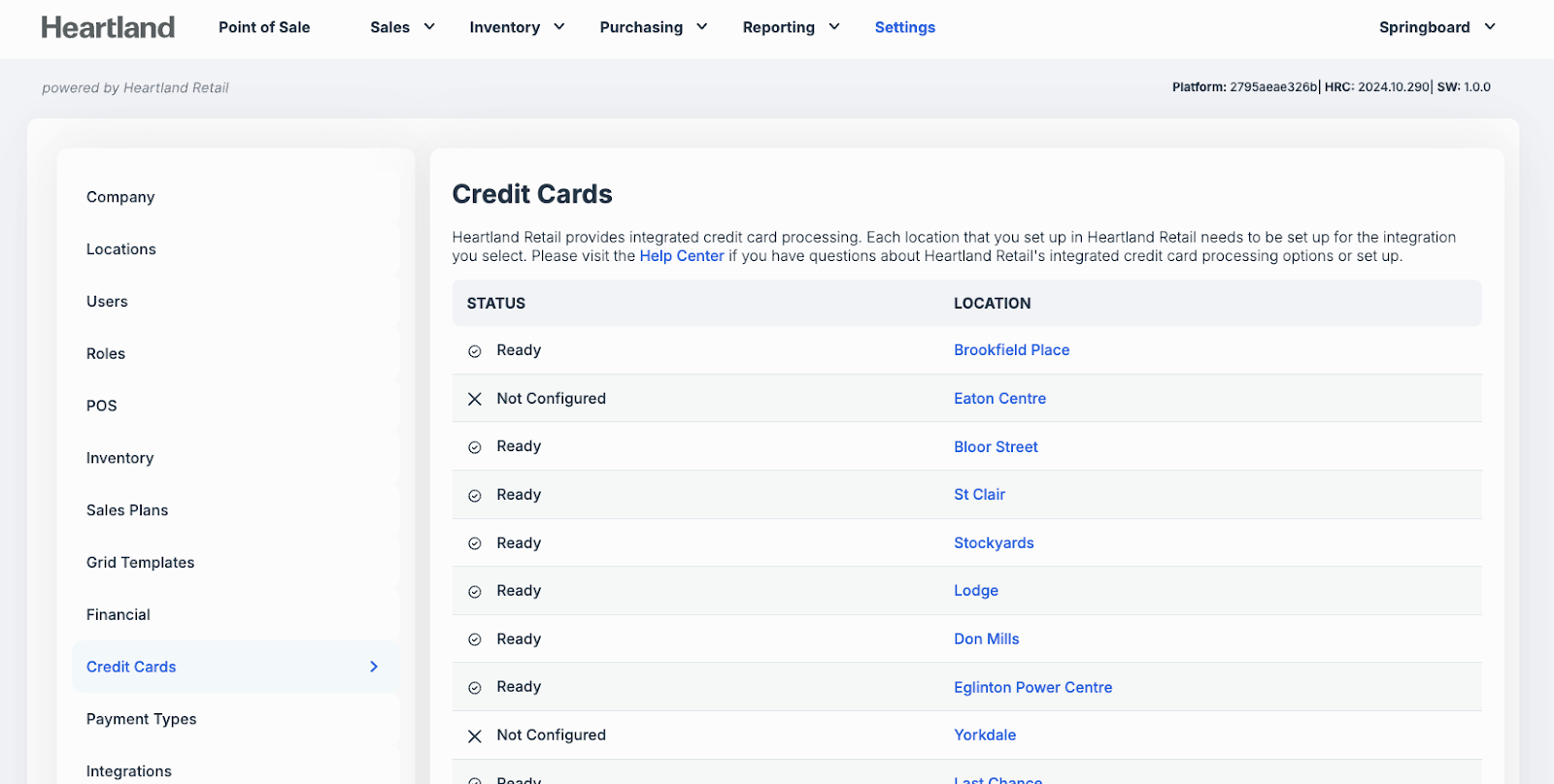From the POS, go to Settings > Credit Cards and select a location.