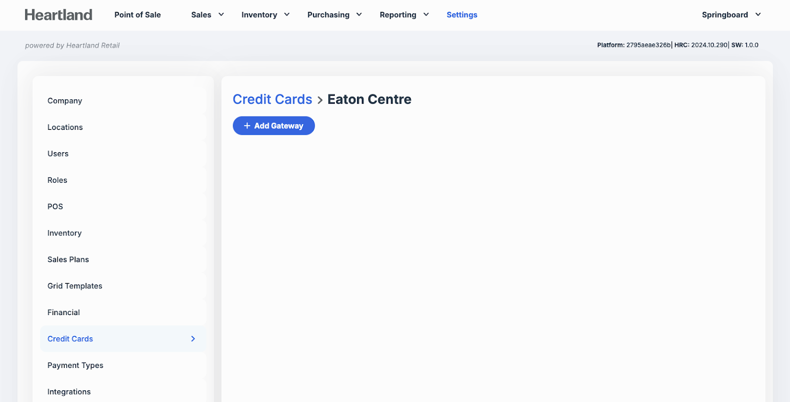 Select Credit Cards and then select +Add Gateway.