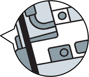 - Insert the new ribbon cassette under the cover (as shown below), then push the ribbon cassette down until it clicks.