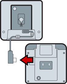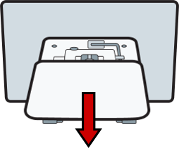 - On the POS terminal, slide the bottom plate on the customer-facing side down and then out, exposing the CFD port.