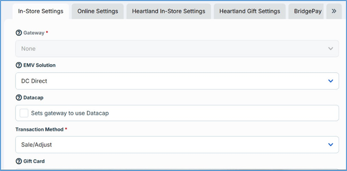 - In the Gift Card list, select Datacap.