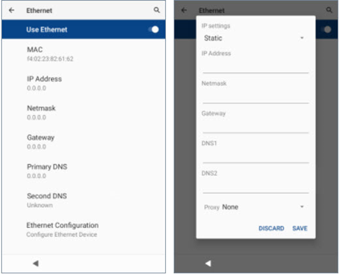 - Tap Ethernet Configuration, then tap Static.