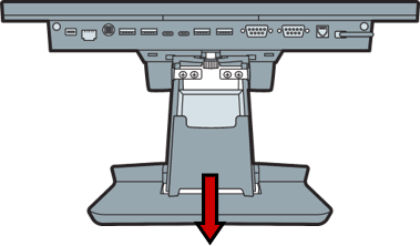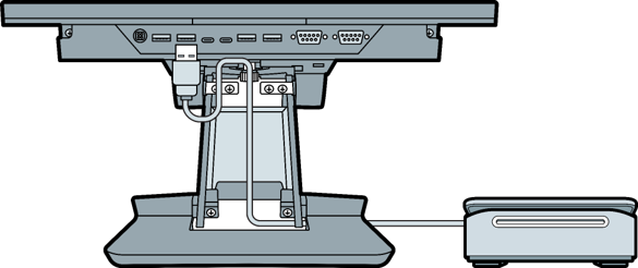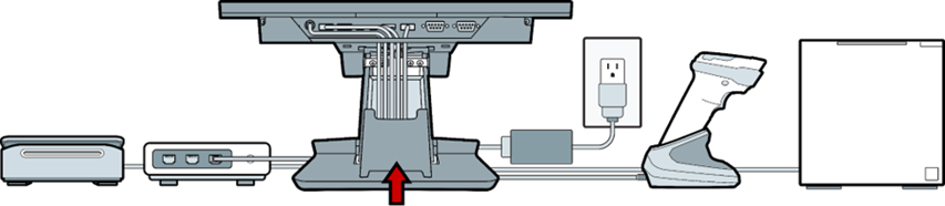 - Run the cable through the bottom port and cable channel of the POS stand.
