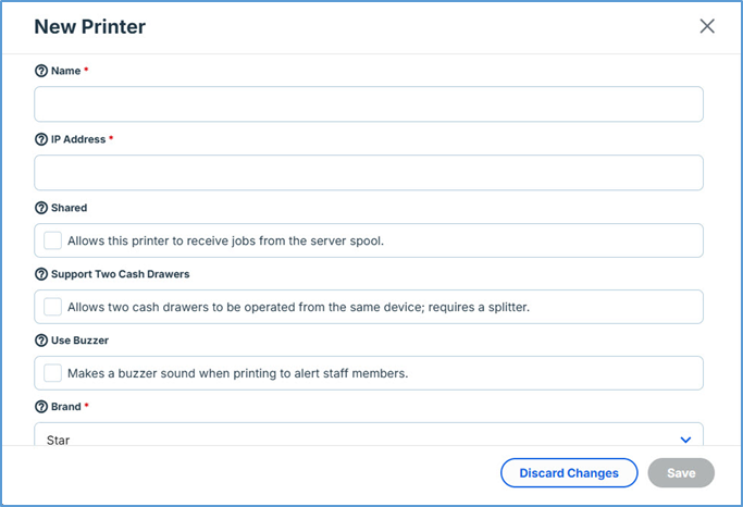 - If you are defining a kitchen printer, select the Shared check box.