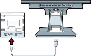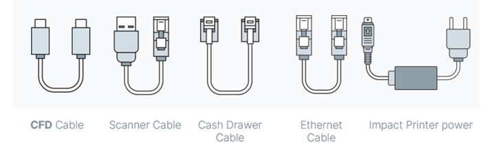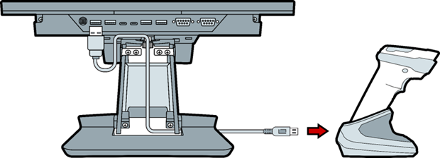 - Plug the scanner cable into one of the POS USB ports and the base of the scanner.