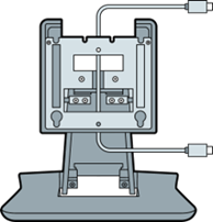 - Feed the DC port of the power cable through the openings on the bottom of the stand.