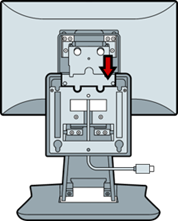 - Route the network cable through the bottom access port and cable channel in the neck of the stand.