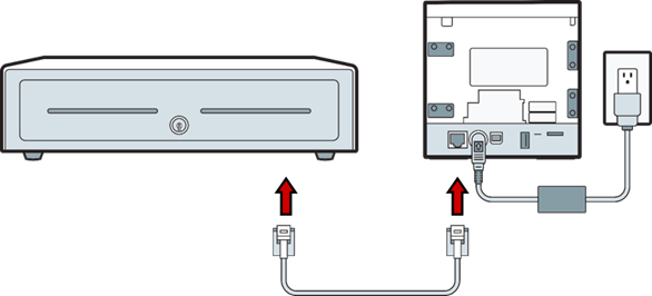 - Plug the end of the cable, labeled Cash Drawer, into the cash drawer.