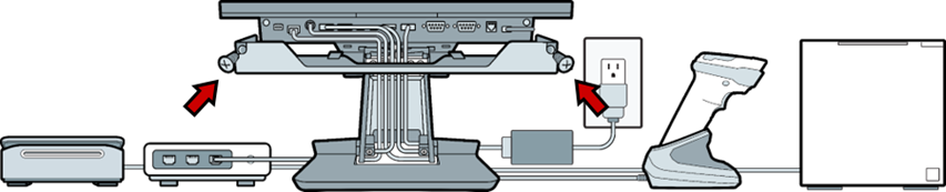 - Connect customer display FeDP cable to POS Stand.