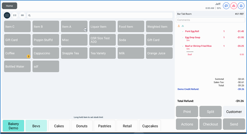 After editing the stock counts of all necessary items, tap Save the save the new counts. Tap Clear All to clear all current item tiles from the screen.