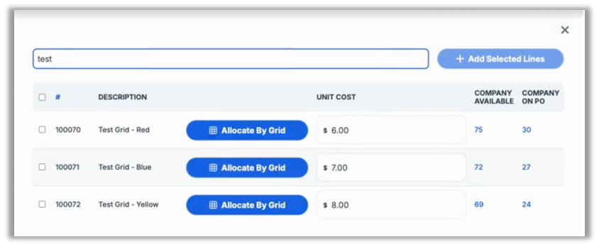 Then, when viewing items on a PO, you can select Allocate By Grid.