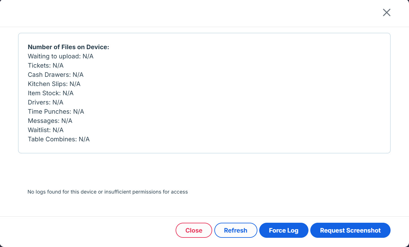 If you use the Request Screenshot function to collect a screenshot from a POS running on a Mobile 2.0 device, the POS will display a prompt requesting permission to take the screenshot. If you use the Request Screenshot function to collect a screenshot from a POS running on an iPad or XC23 device, the POS will display no permission prompt.