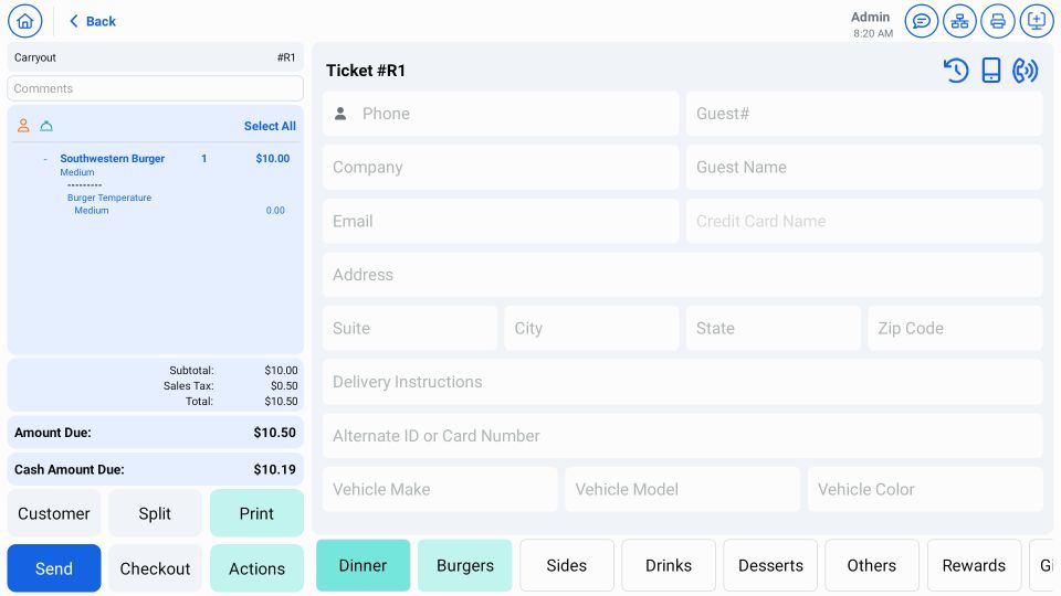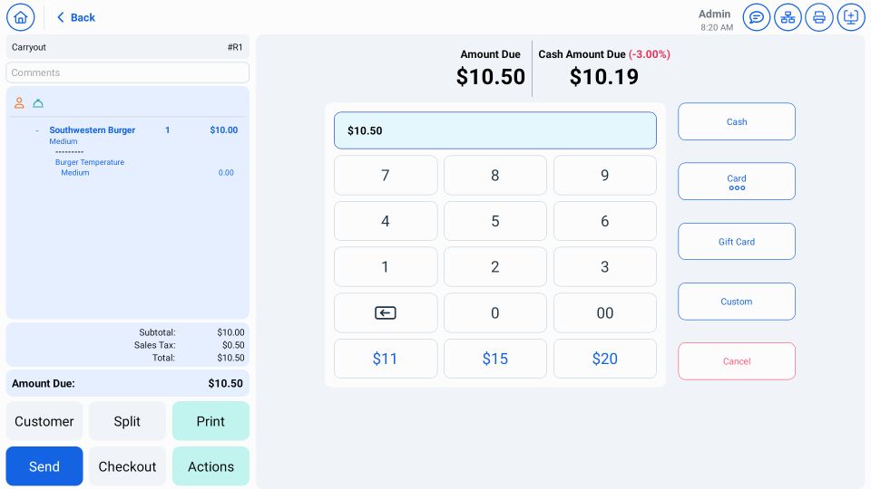 - Custom Tenders screen