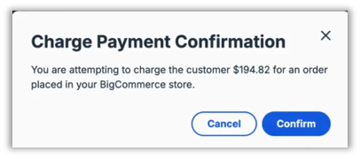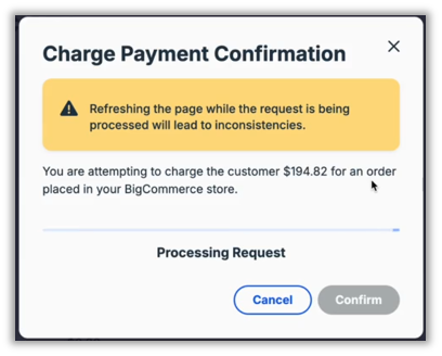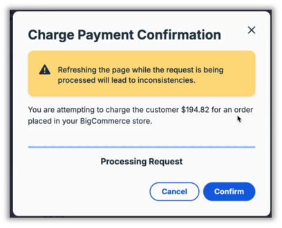 Select Confirm to initiate the charge to the customer in BigCommerce.