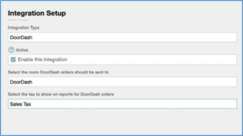 - In the Integration Setup panel, in the Integration Type list, select DoorDash.