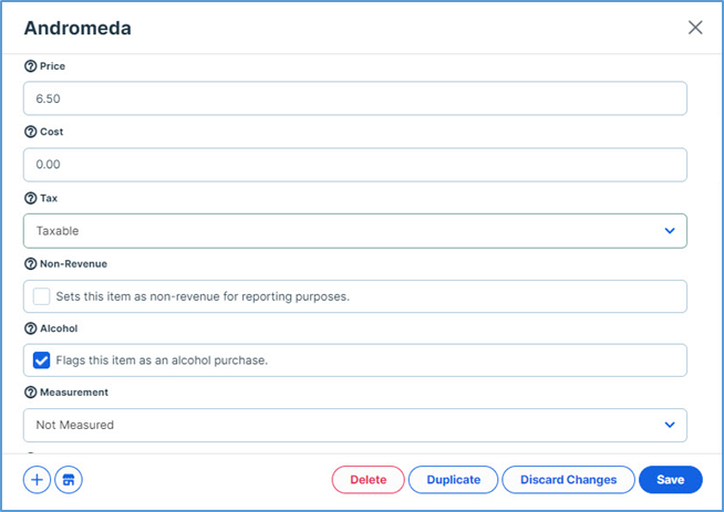 - Repeat Steps 2 to 4 for every alcohol item that will be available in the third-party menu.