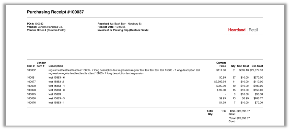 This version addresses an issue that caused pagination footers (for example, ‘page 4 of 7’) to display twice, once in the center and once on the right, at the bottom of each page. With this release, PDFs now display this information once, at the bottom right, as intended. This fix applies to Inventory Transfers, Purchase Orders, Reports, and various other PDF exports.